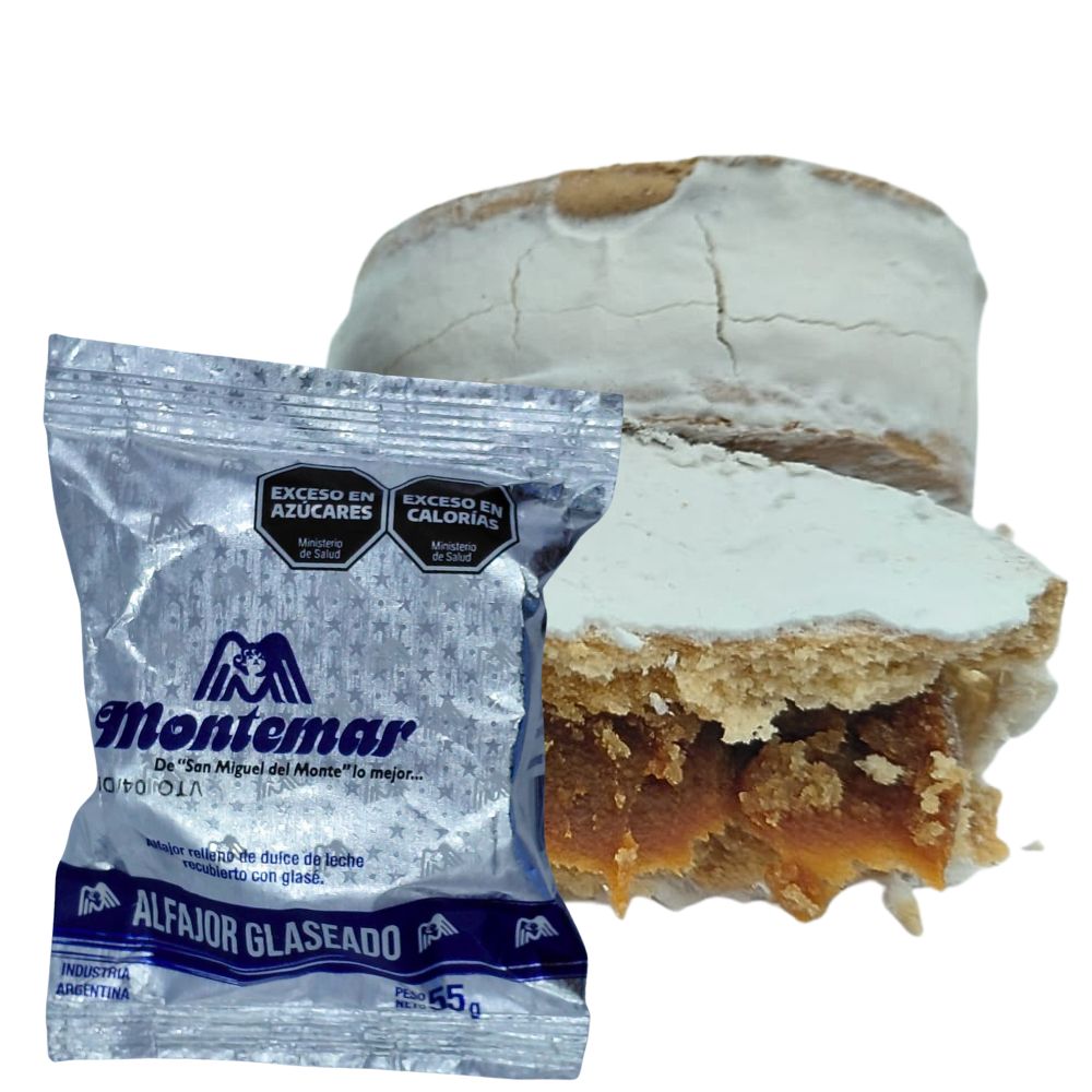 El Alfajor con Glaseado Montemar se destaca por su suave equilibrio entre la dulzura del glaseado y el sabor tradicional del dulce de leche. Preparado con dos tapas tiernas y esponjosas, lleva en su interior un relleno abundante y cremoso que aporta toda la identidad del alfajor clásico.